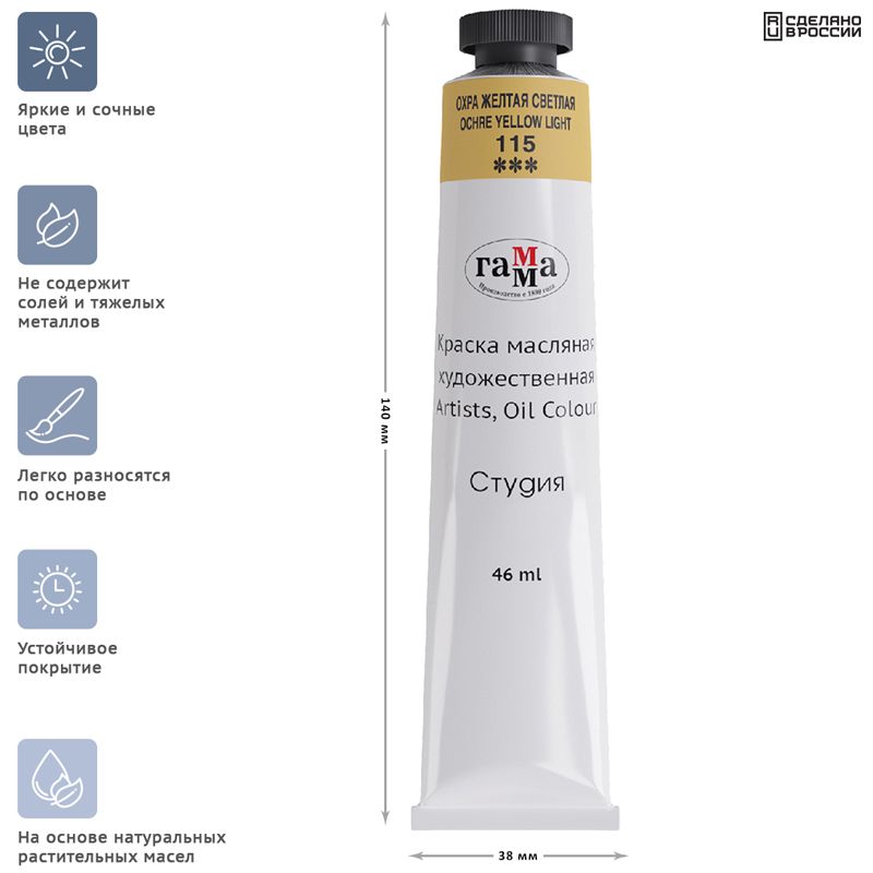 Краска масляная художественная Гамма "Студия", 46мл, туба, охра желтая светлая