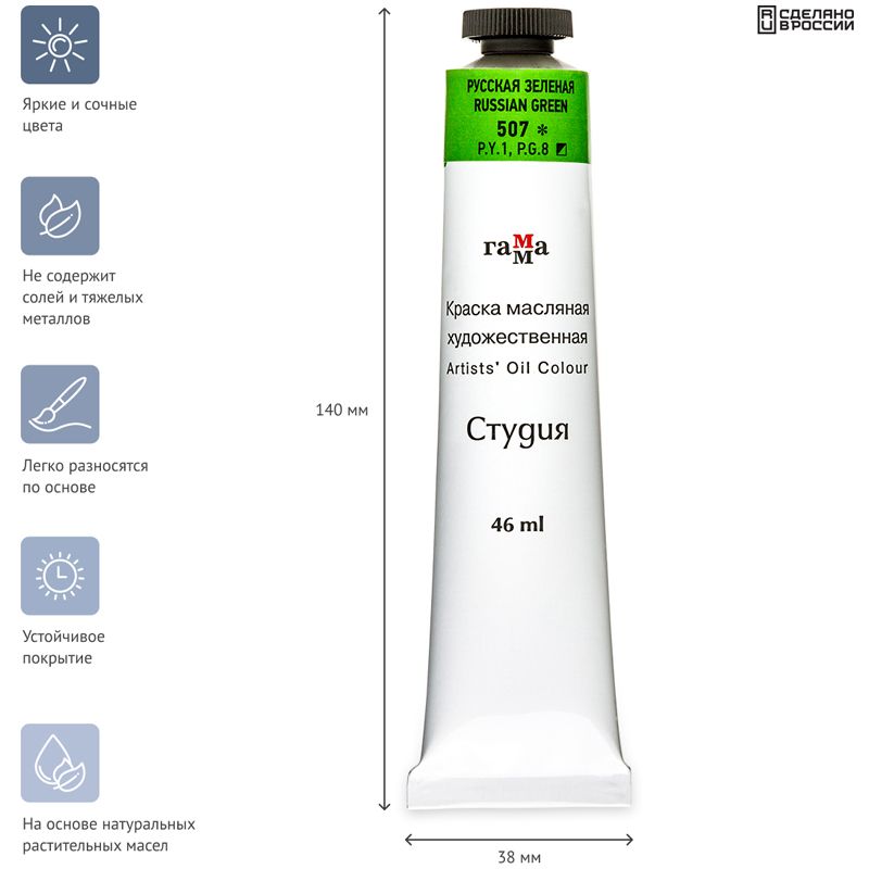 Краска масляная художественная Гамма "Студия", 46мл, туба, русская зеленая