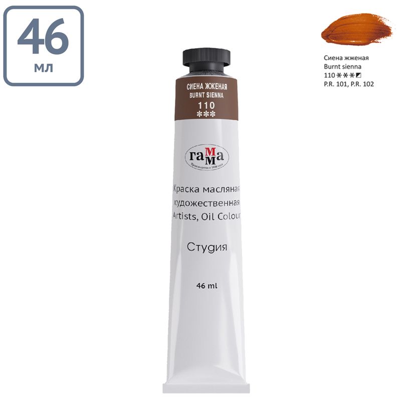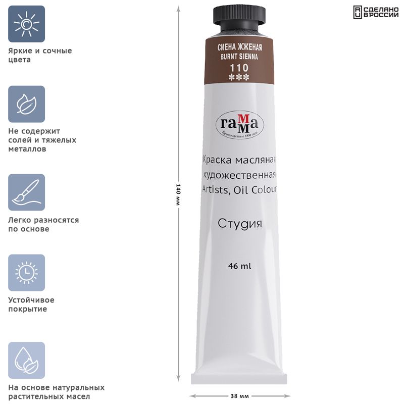 Краска масляная художественная Гамма "Студия", 46мл, туба, сиена жженая