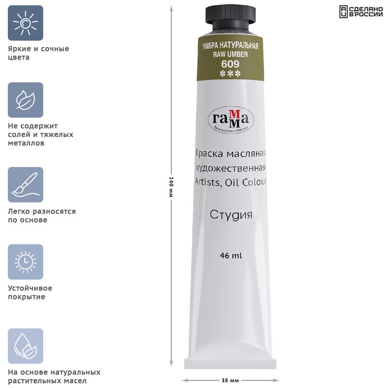 Краска масляная художественная Гамма "Студия", 46мл, туба, умбра натуральная