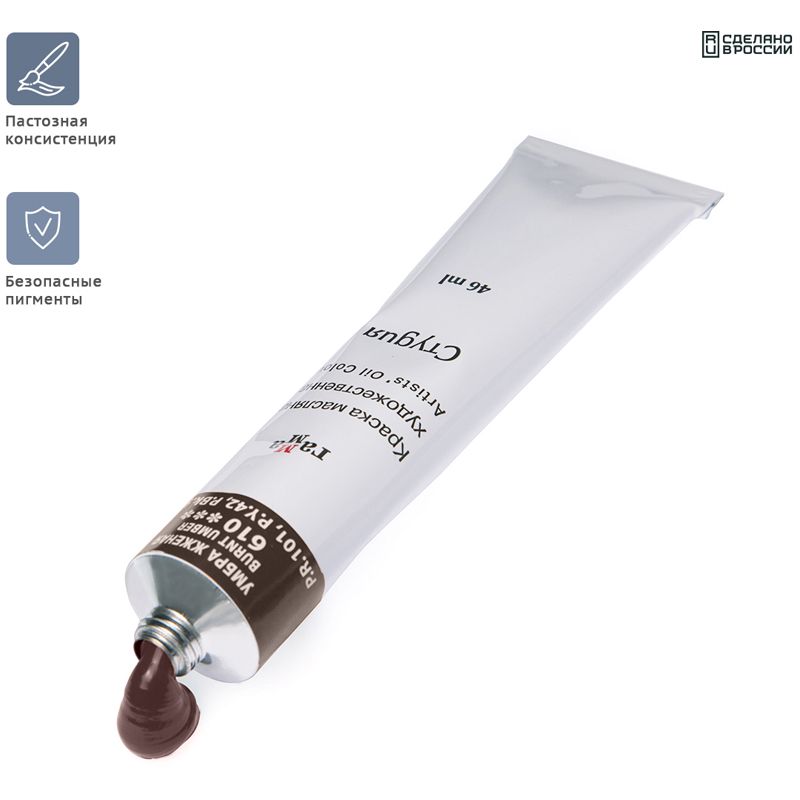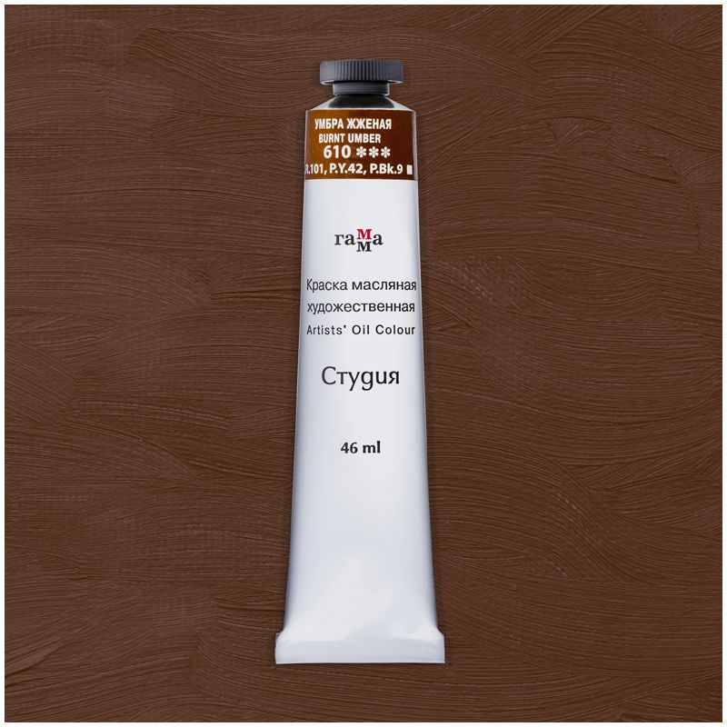 Краска масляная художественная Гамма "Студия", 46мл, туба, умбра жженая