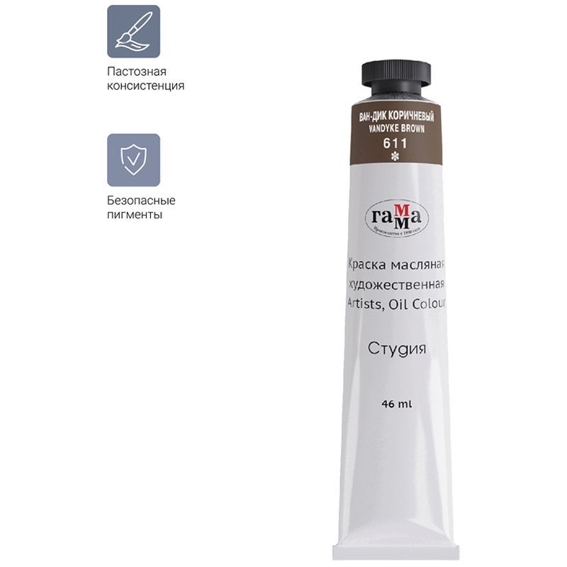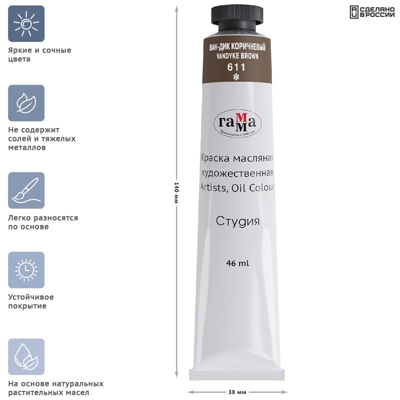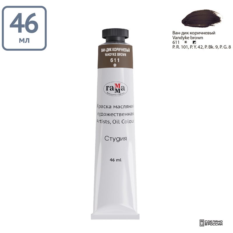 Краска масляная художественная Гамма "Студия", 46мл, туба, ван-дик коричневый