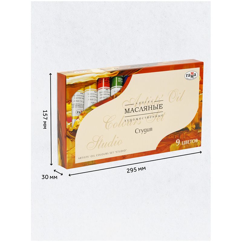 Краски масляные Гамма "Студия", 09 цветов, туба 46мл, картон. упаковка