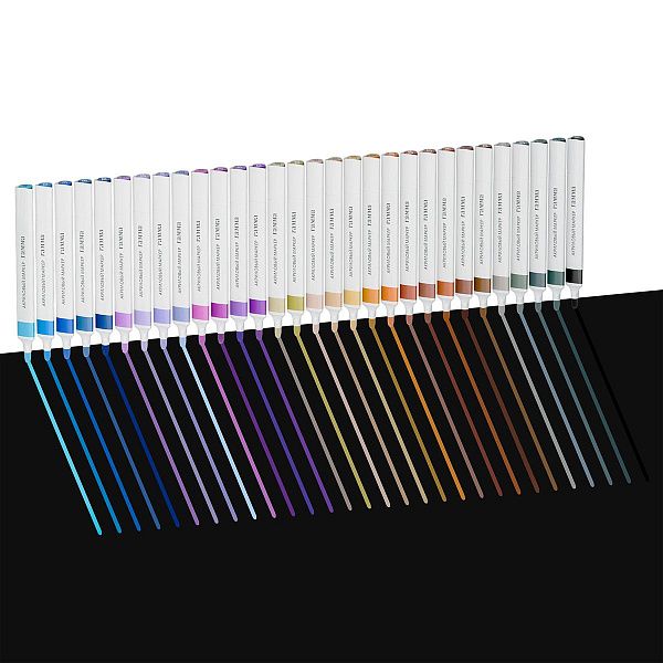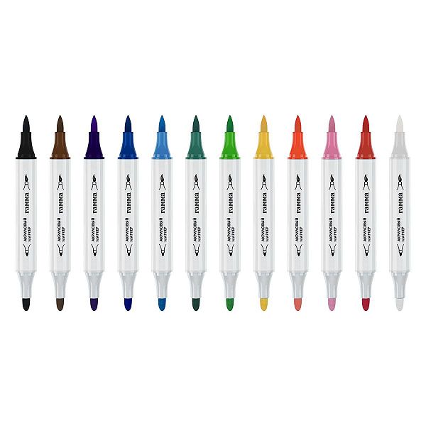 - Двусторонние маркеры — с двумя типами наконечников (тонкий и широкий), позволяют менять стиль в процессе без замены инструмента.