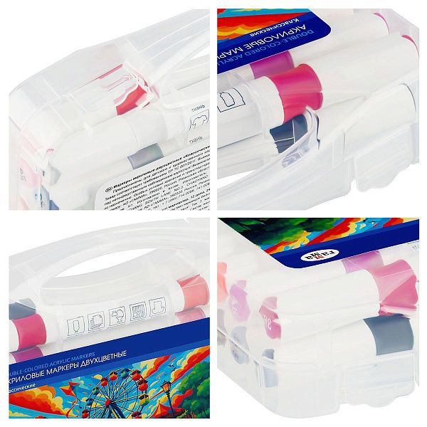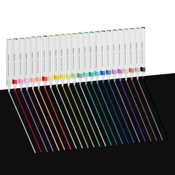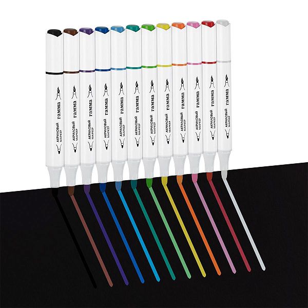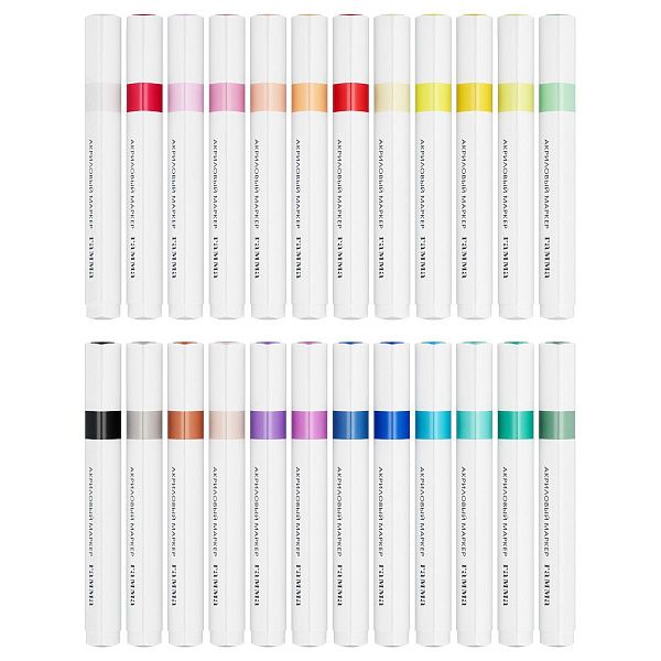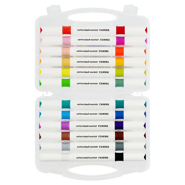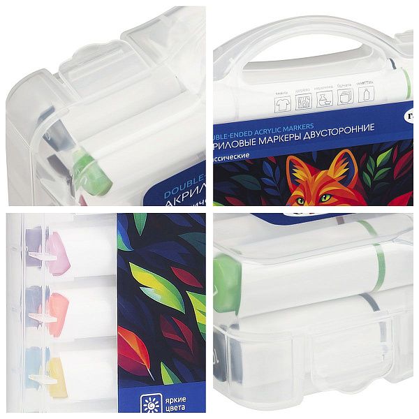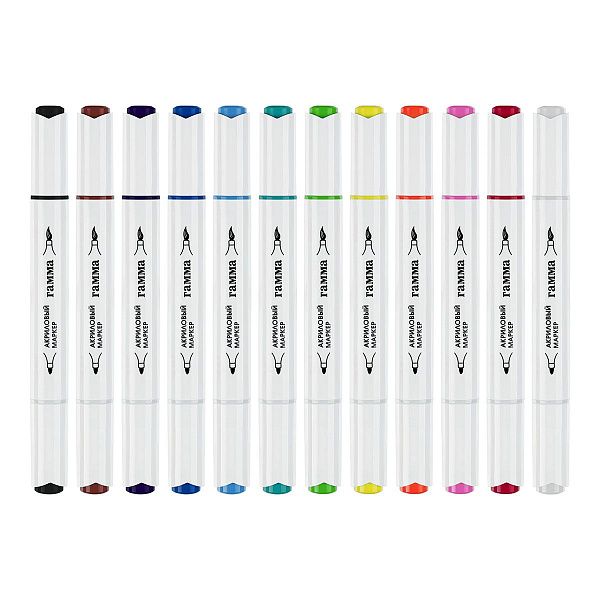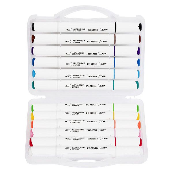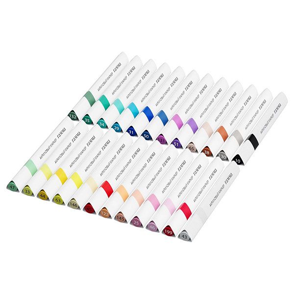 - Наборы акриловых маркеров — готовые комплекты из 12, 24 и более цветов, удобные при обучении, работе над проектами и студийной практике.
