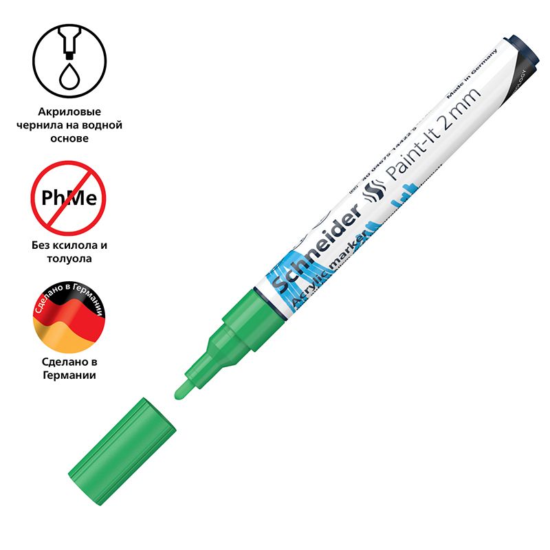 Маркер акриловый Schneider "Paint-It 310" 2мм, пулевидный, зеленый