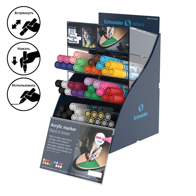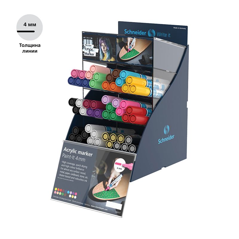 Маркер акриловый Schneider "Paint-It 320" 4мм, пулевидный, ассорти, дисплей