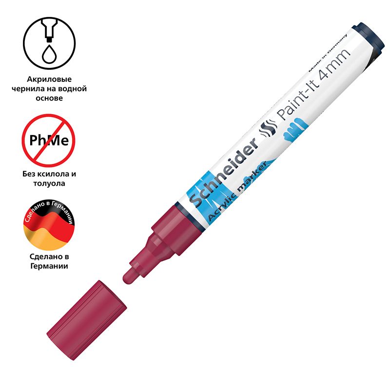 Маркер акриловый Schneider "Paint-It 320" 4мм, пулевидный, бордовый
