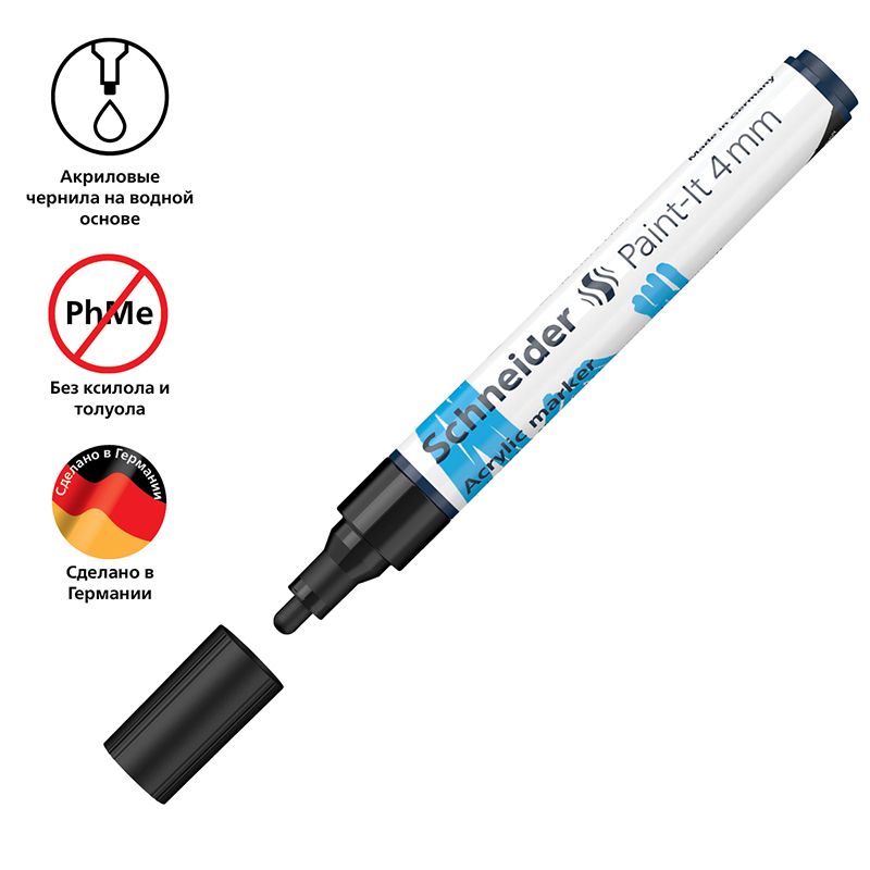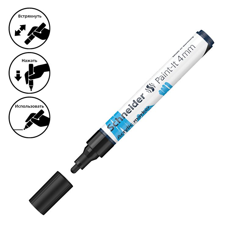 Маркер акриловый Schneider "Paint-It 320" 4мм, пулевидный, черный