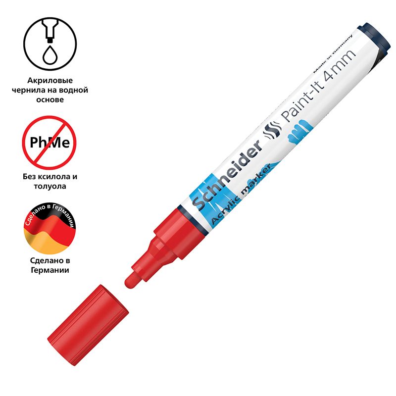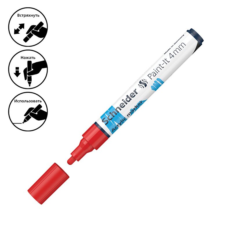 Маркер акриловый Schneider "Paint-It 320" 4мм, пулевидный, красный
