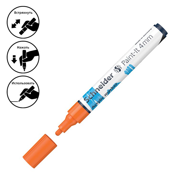 Маркер акриловый Schneider "Paint-It 320" 4мм, пулевидный, оранжевый