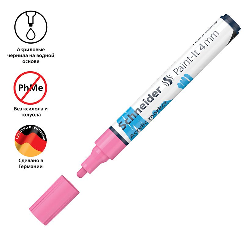 Маркер акриловый Schneider "Paint-It 320" 4мм, пулевидный, пастельный розовый