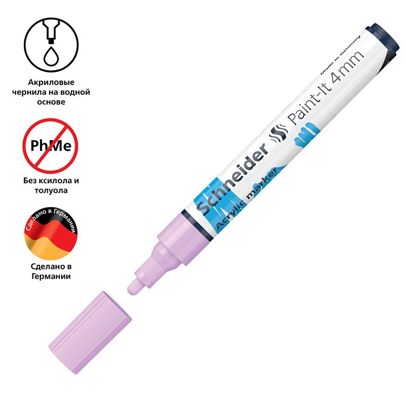 Маркер акриловый Schneider "Paint-It 320" 4мм, пулевидный, пастельный сиреневый