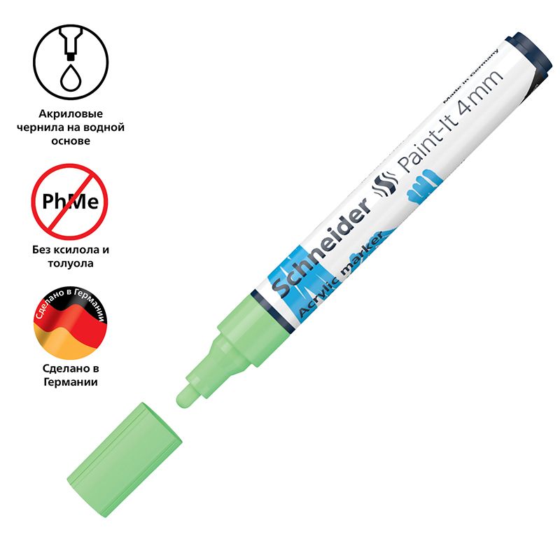 Маркер акриловый Schneider "Paint-It 320" 4мм, пулевидный, пастельный зеленый