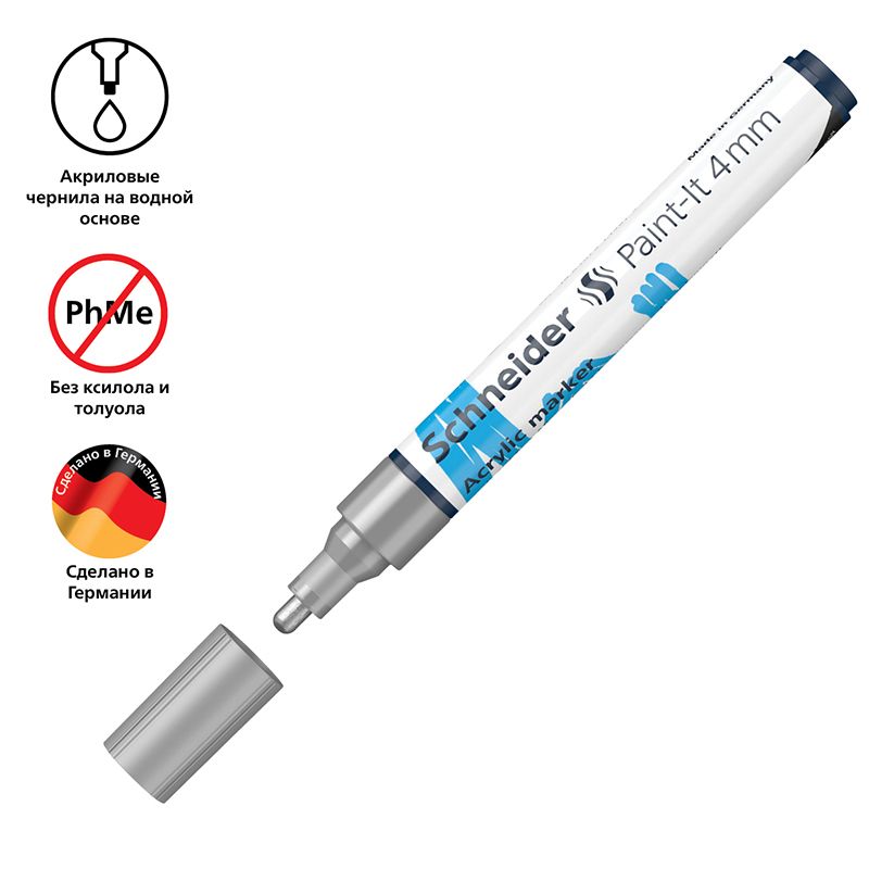Маркер акриловый Schneider "Paint-It 320" 4мм, пулевидный, серебряный
