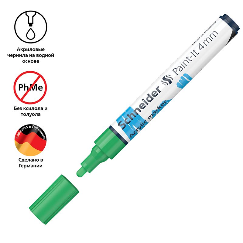Маркер акриловый Schneider "Paint-It 320" 4мм, пулевидный, зеленый