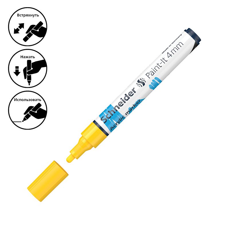 Маркер акриловый Schneider "Paint-It 320" 4мм, пулевидный, желтый