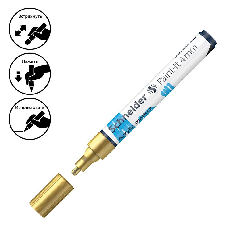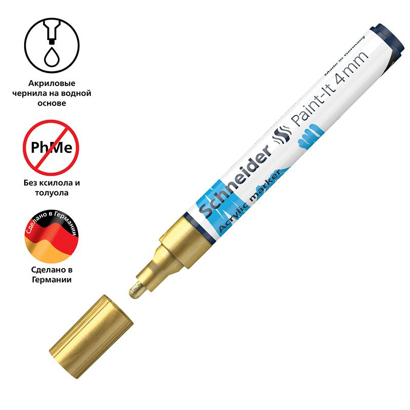 Маркер акриловый Schneider "Paint-It 320" 4мм, пулевидный, золотой
