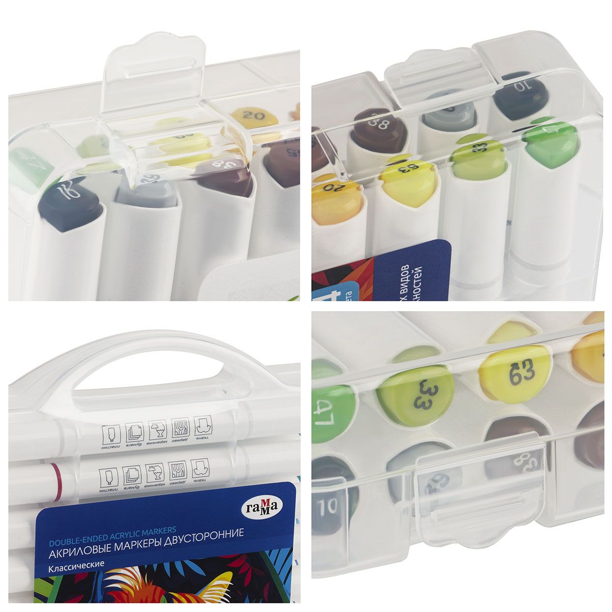 Маркеры акриловые Гамма "Классические", 24 цв., двусторонние, пластик.бокс