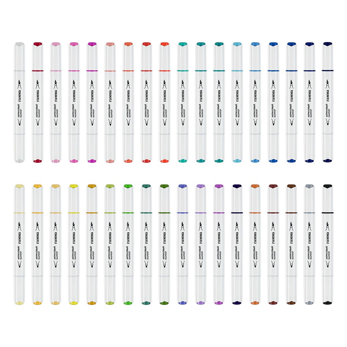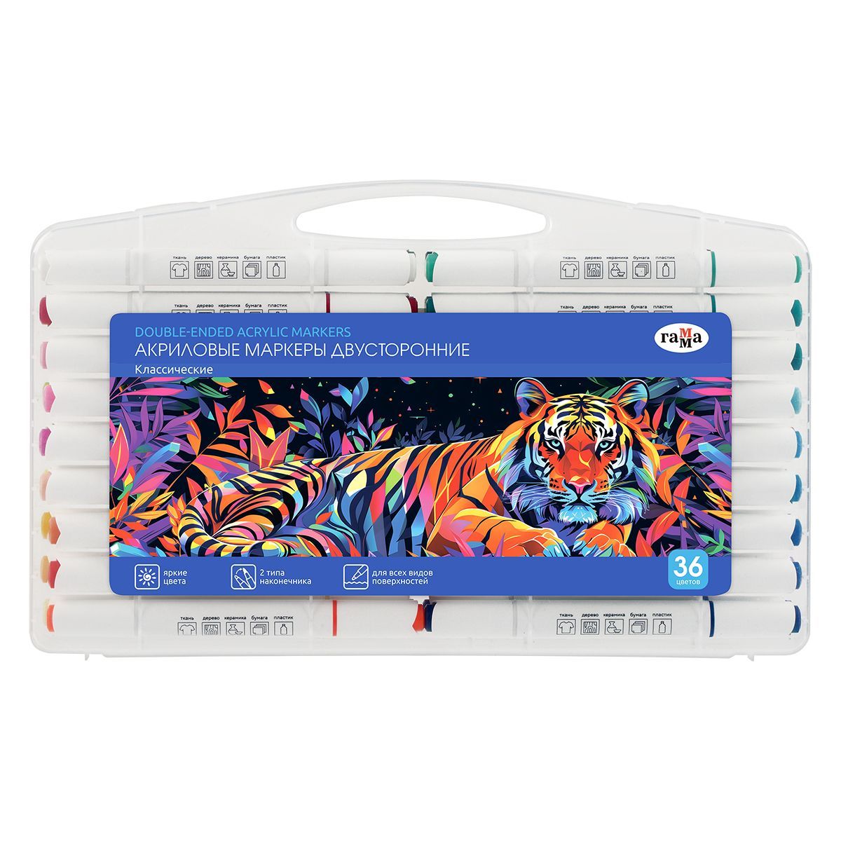 Маркеры акриловые Гамма "Классические", 36 цв., двусторонние, пластик.бокс