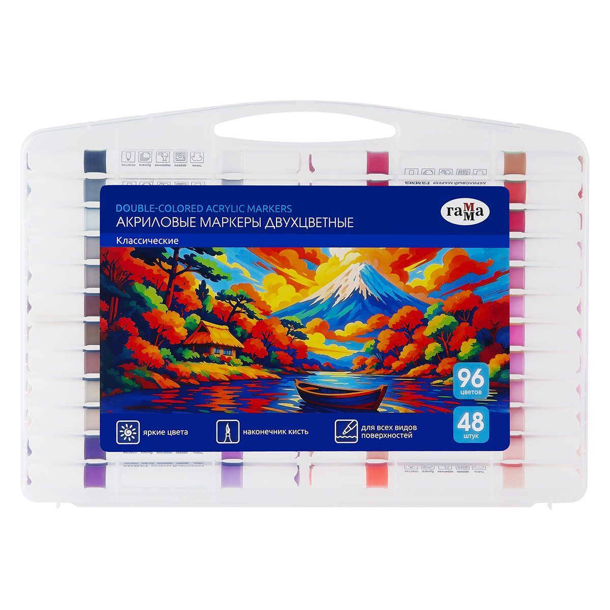 Маркеры акриловые Гамма "Классические", двухцветные, 48шт., 96 цв., пластик.бокс