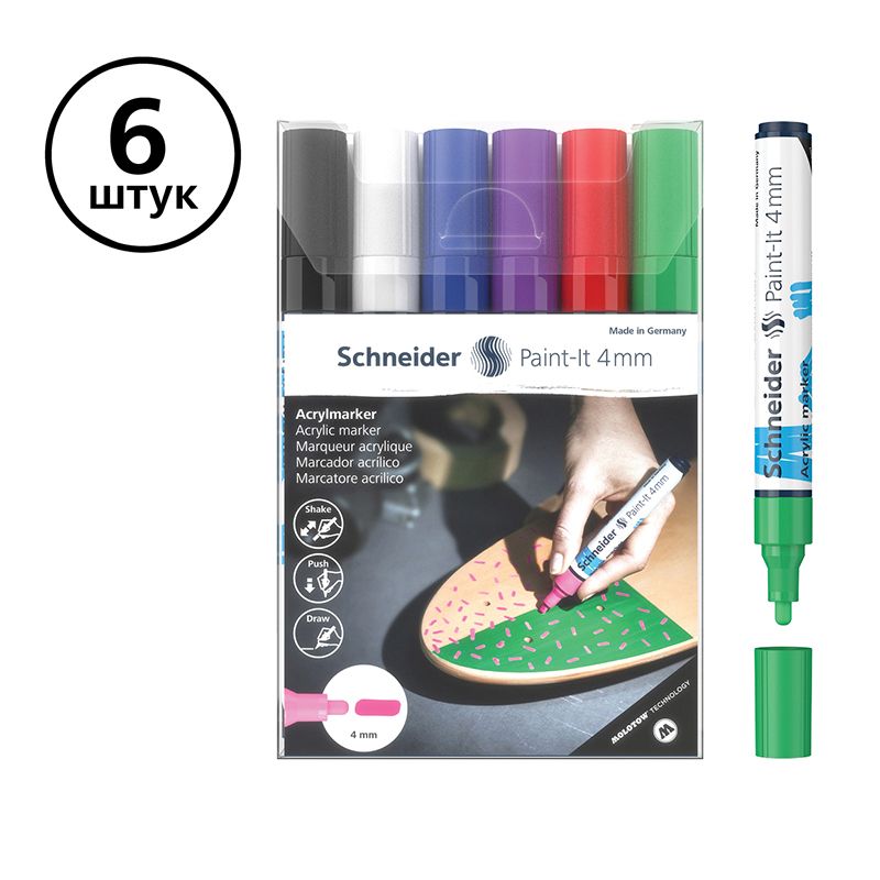 Набор маркеров акриловых Schneider "Paint-it 320", 4мм, ассорти, 6шт.