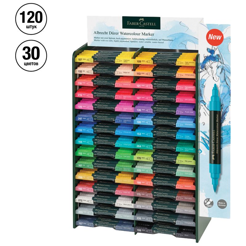 Дисплей с аквамаркерами Faber-Castell "Albrecht Dürer", с наполн., 120шт., 30 цветов
