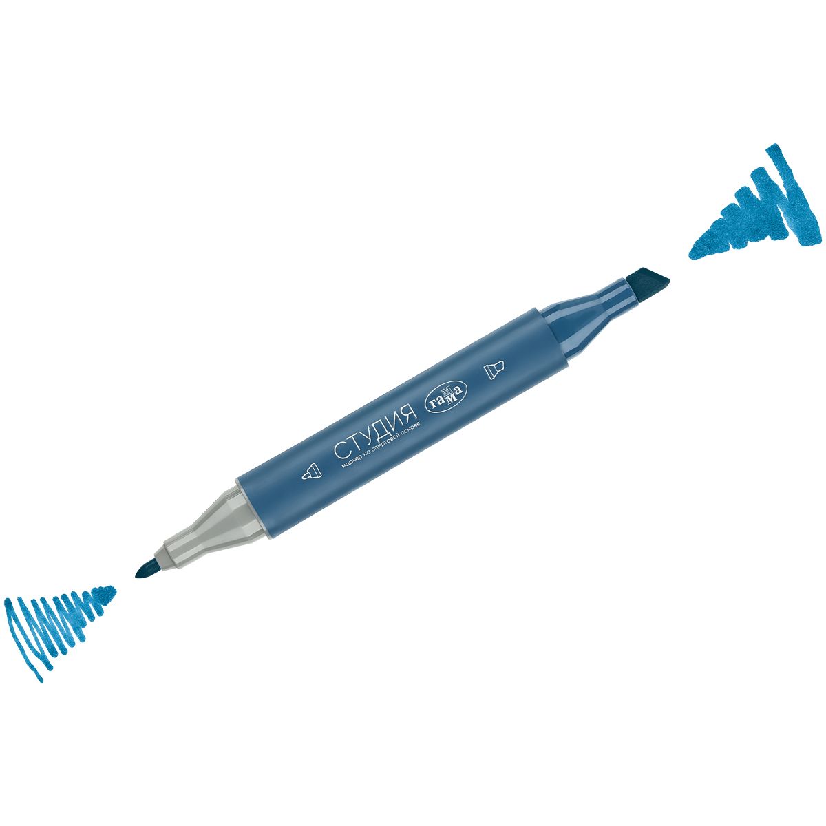 Маркер двусторонний для скетчинга Гамма "Студия", голубой, корпус трехгранный, пулевид./клиновид. наконечники