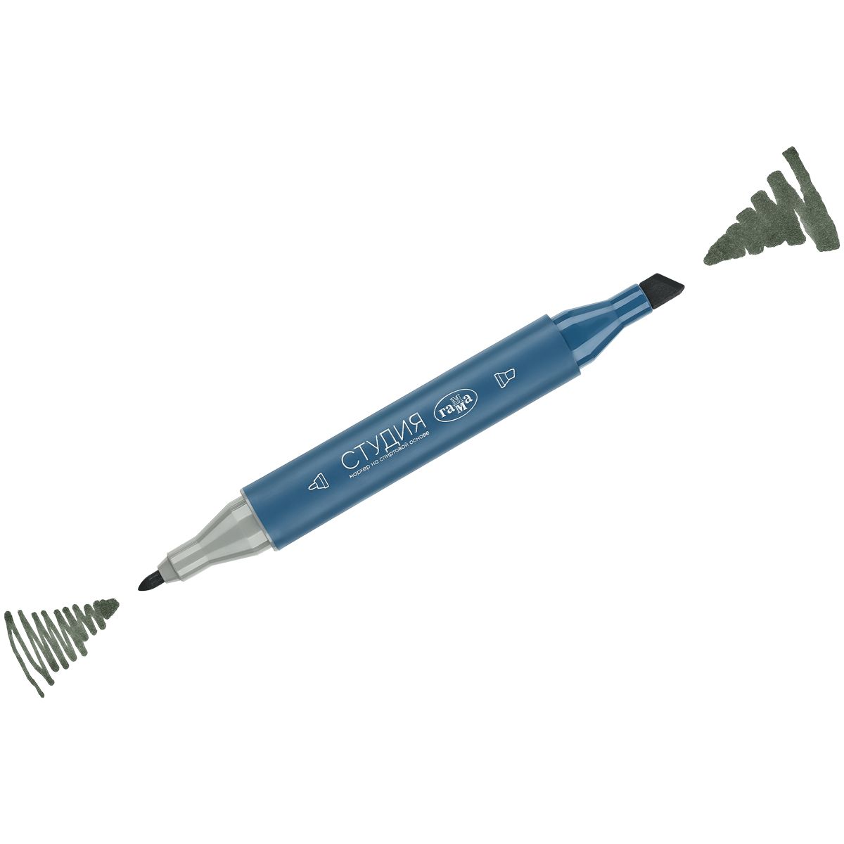 Маркер двусторонний для скетчинга Гамма "Студия", серо-зеленый, корпус трехгранный, пулевид./клиновид. наконечники