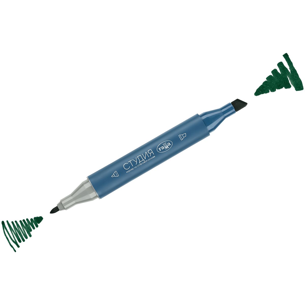 Маркер двусторонний для скетчинга Гамма "Студия", темно-зеленый, корпус трехгранный, пулевид./клиновид. наконечники