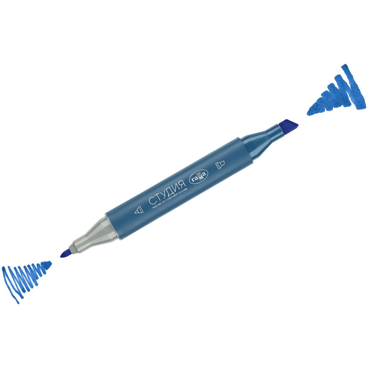 Маркер двусторонний для скетчинга Гамма "Студия", ярко-голубой, корпус трехгранный, пулевид./клиновид. наконечники