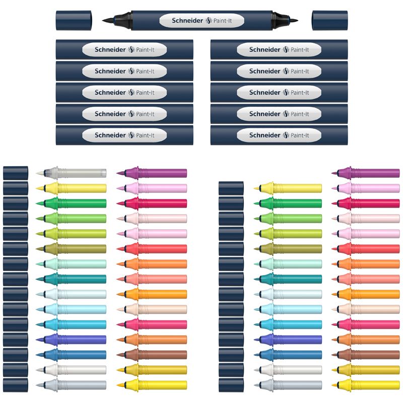 Набор двухсторонних маркеров-кистей Schneider "Twinmarker Paint-It" 72 предмета, на водной основе, кисть/пулевидный