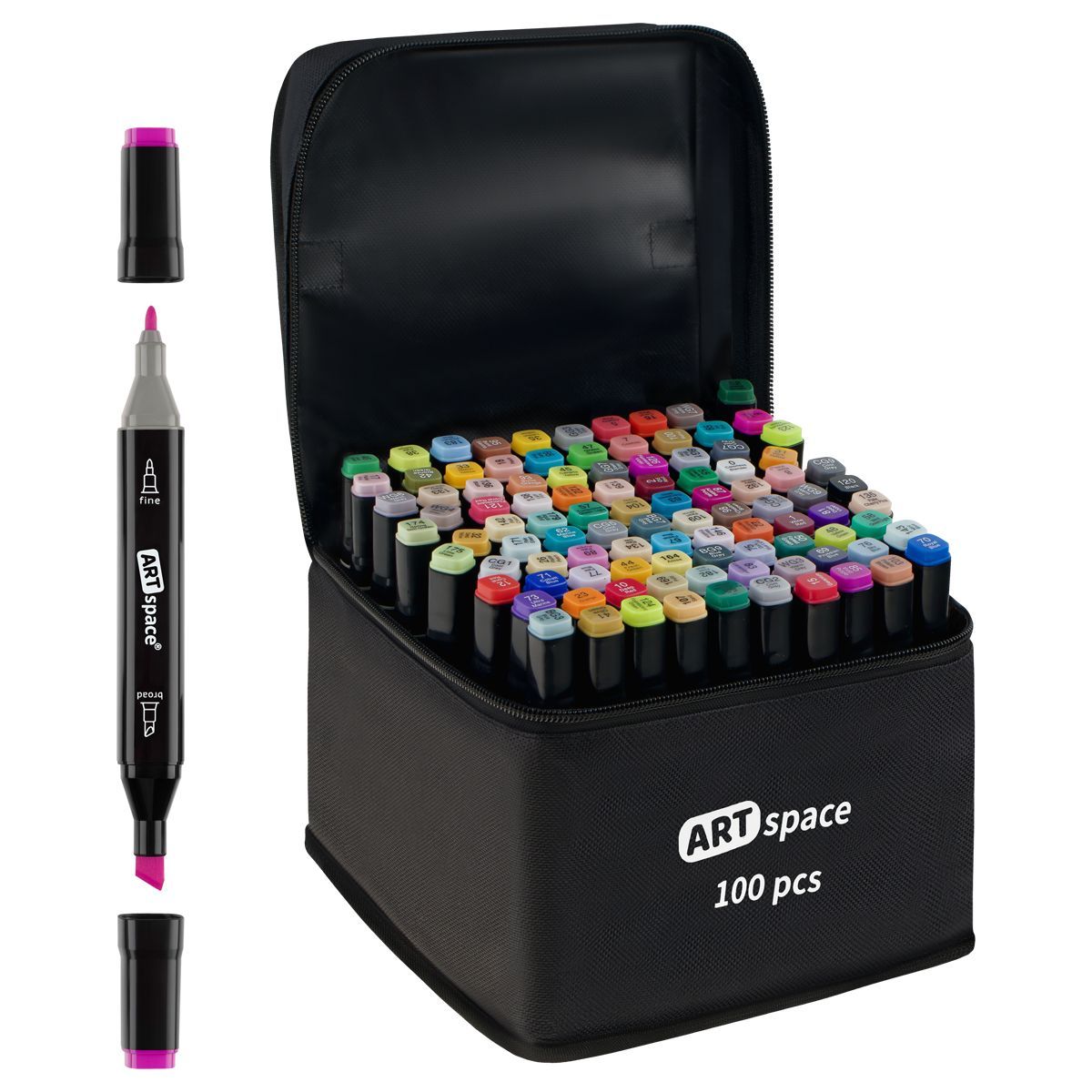 Набор двусторонних маркеров для скетчинга ArtSpace 100цв., основные цвета, пулевид./скош.