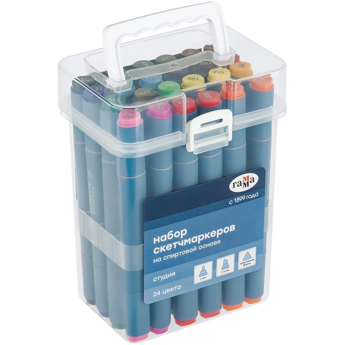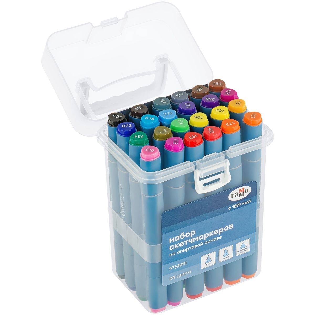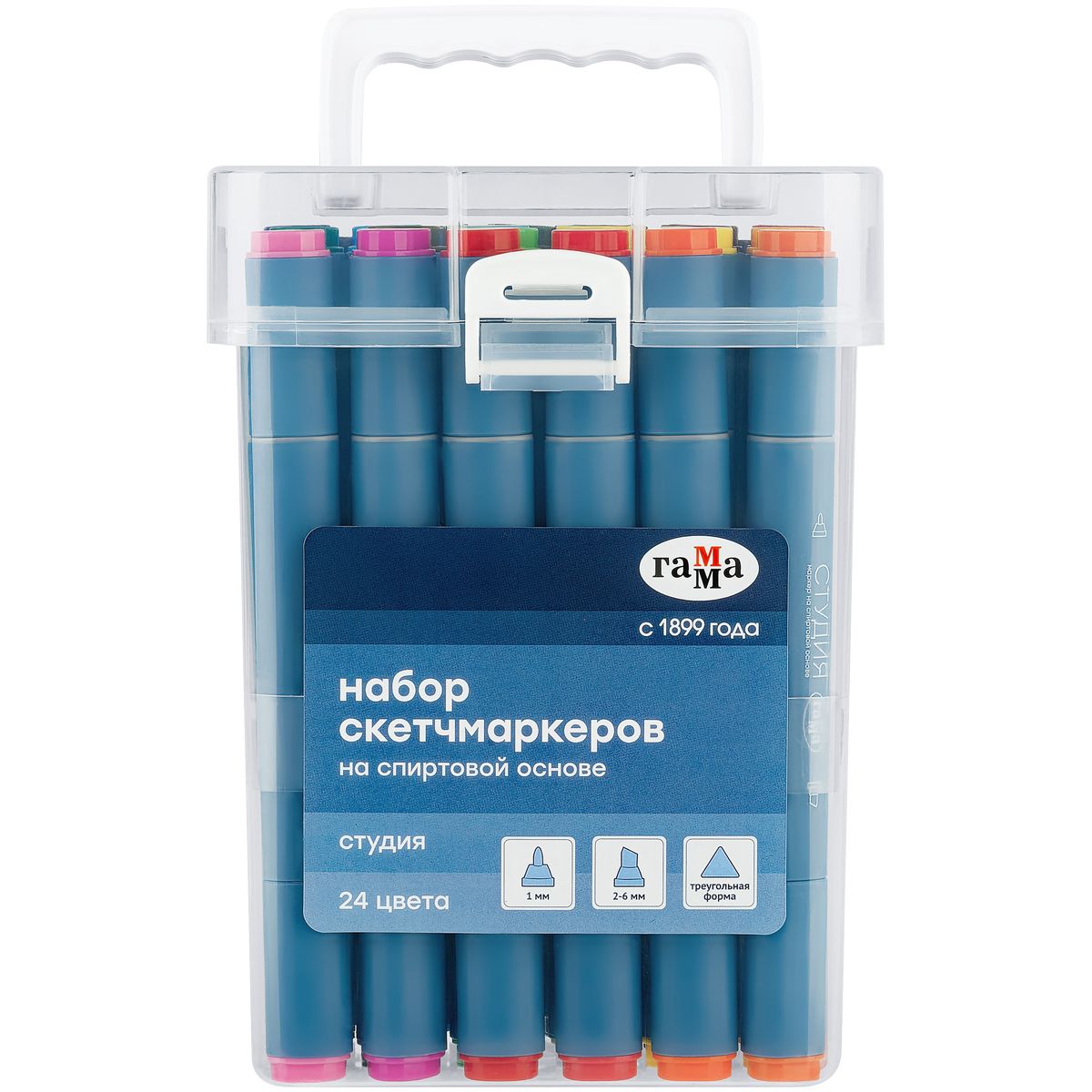 Набор двусторонних маркеров для скетчинга Гамма "Студия" 24цв., основные цвета, корпус трехгранный, пулевид./клиновид. наконечники, пласт.кейс