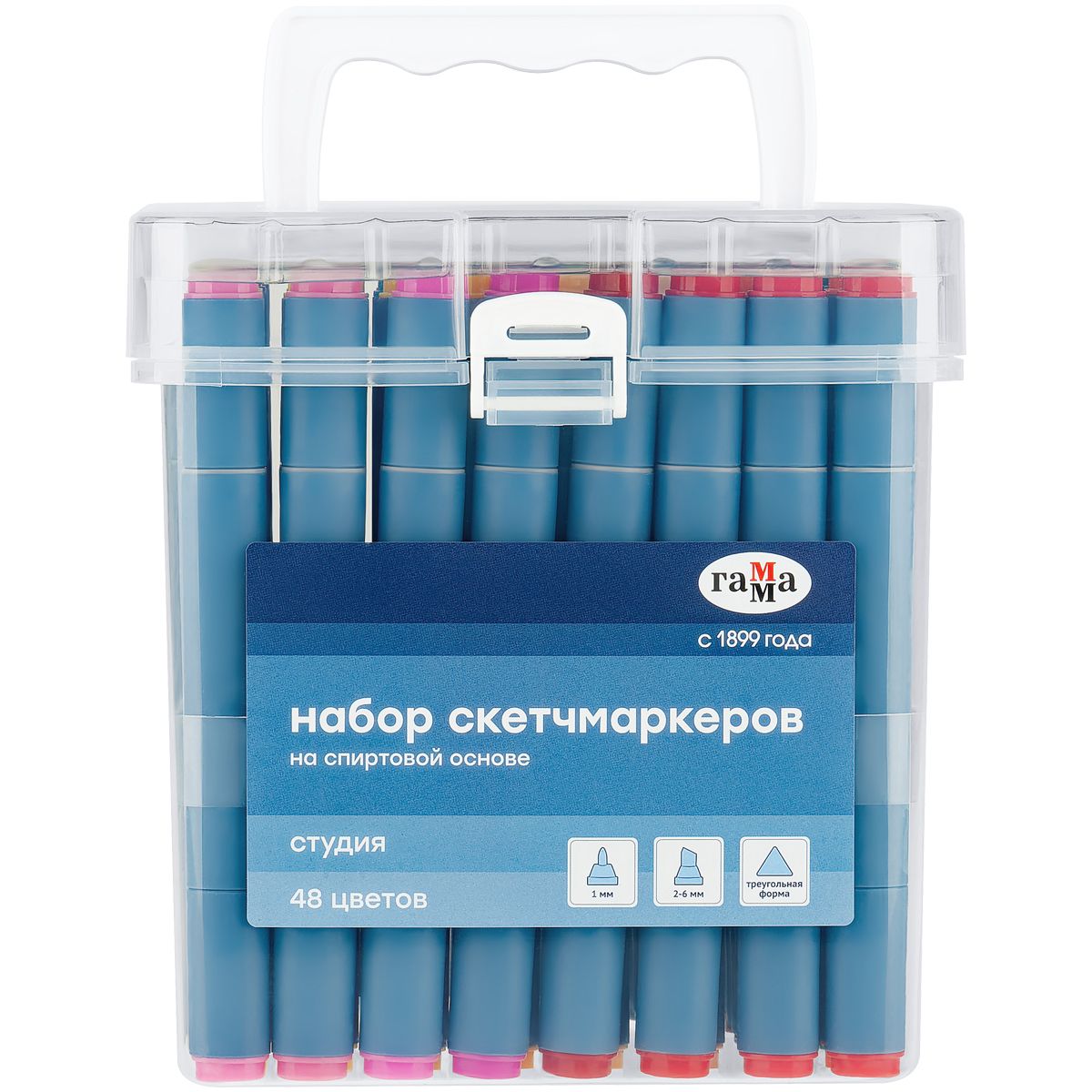 Набор двусторонних маркеров для скетчинга Гамма "Студия" 48цв., основные цвета, корпус трехгранный, пулевид./клиновид. наконечники, пласт.кейс