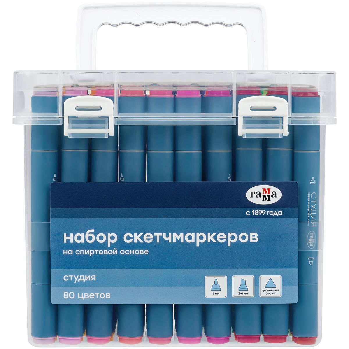Набор двусторонних маркеров для скетчинга Гамма "Студия" 80цв., основные цвета, корпус трехгранный, пулевид./клиновид. наконечники, пласт.кейс
