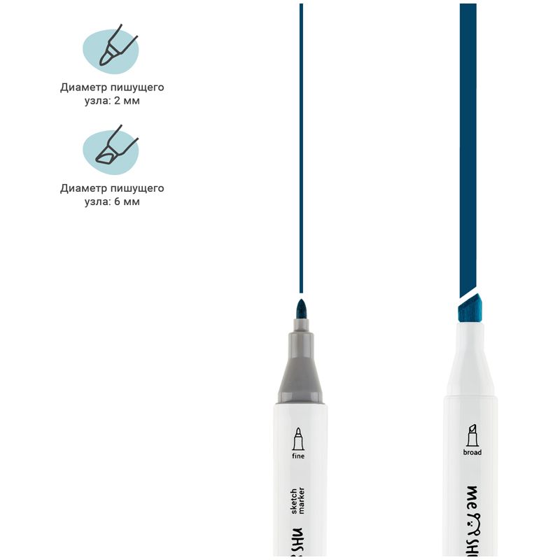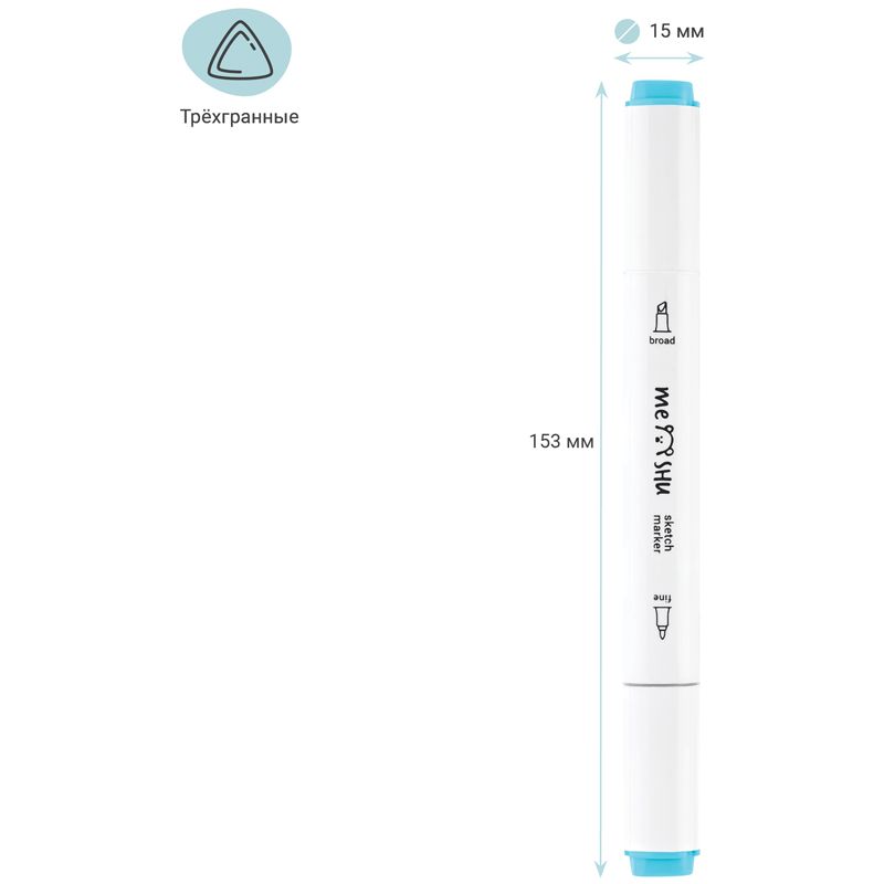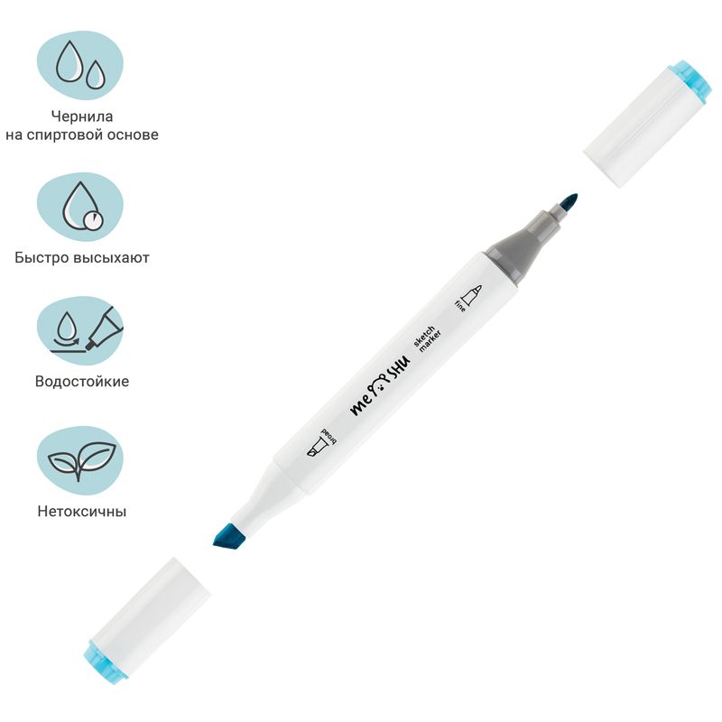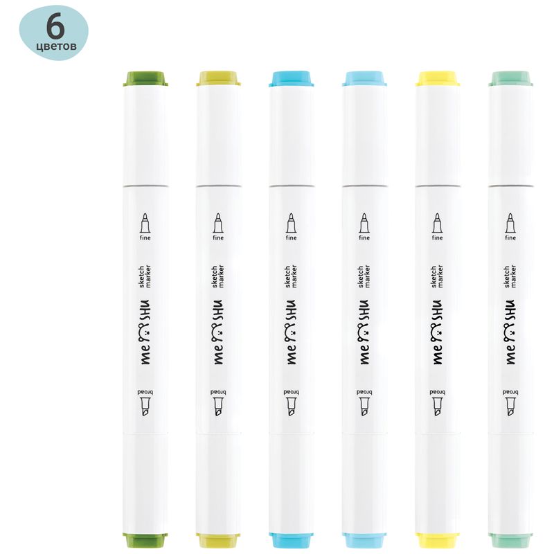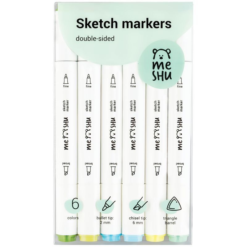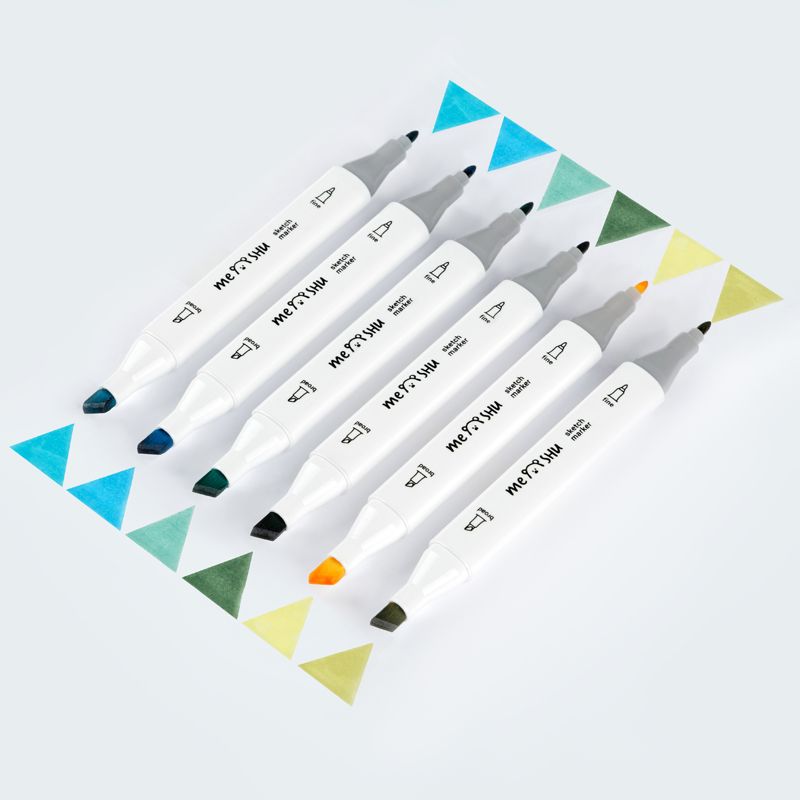 Набор двусторонних маркеров для скетчинга MESHU 06цв., морские цвета, корпус трехгранный, пулевид./клиновид.наконечники, ПВХ-бокс