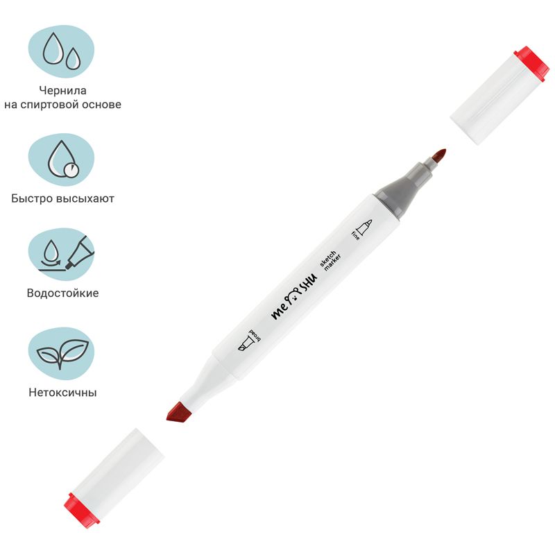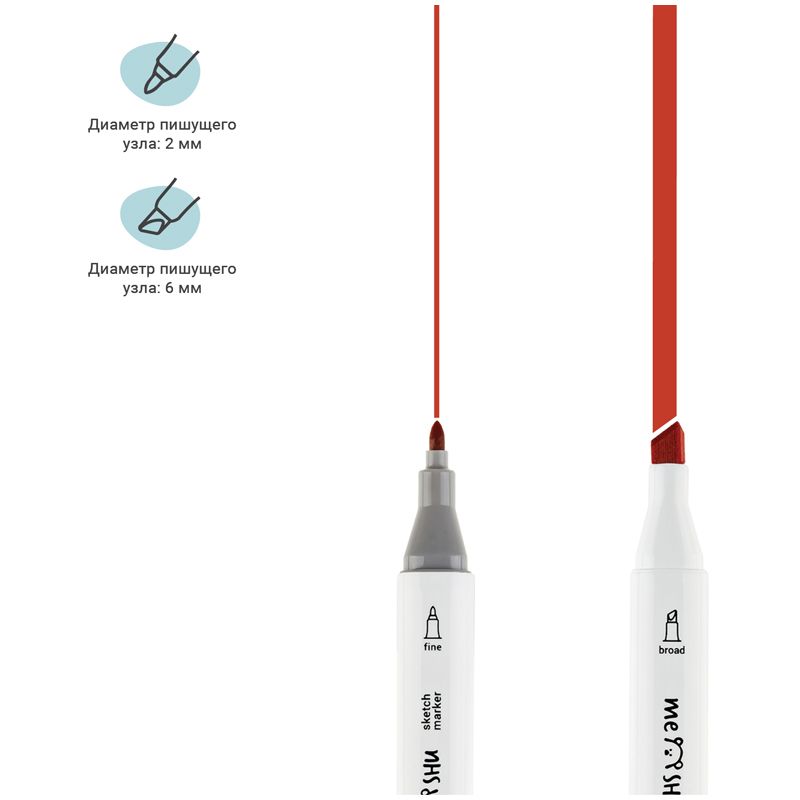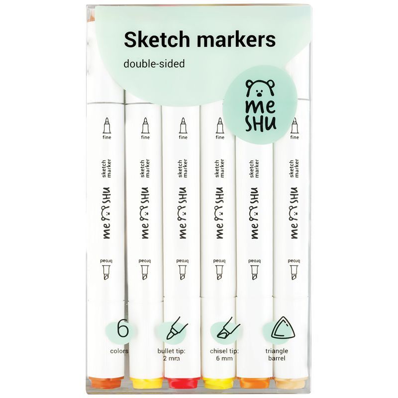 Набор двусторонних маркеров для скетчинга MESHU 06цв., осенние цвета, корпус трехгранный, пулевид./клиновид.наконечники, ПВХ-бокс