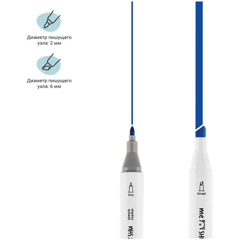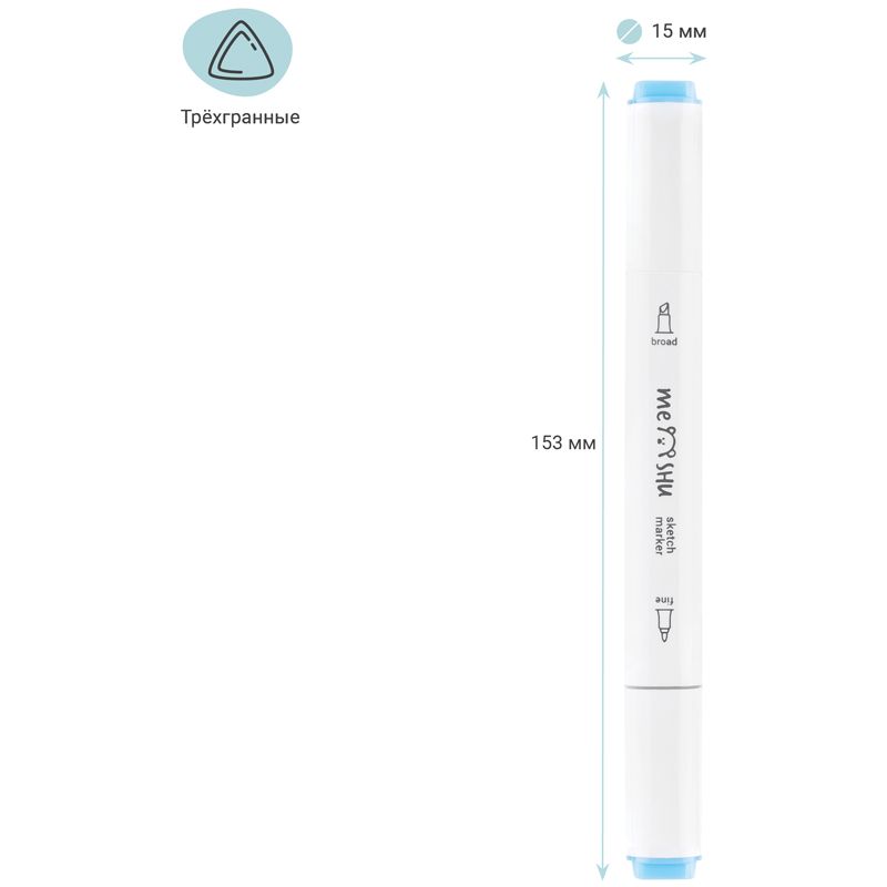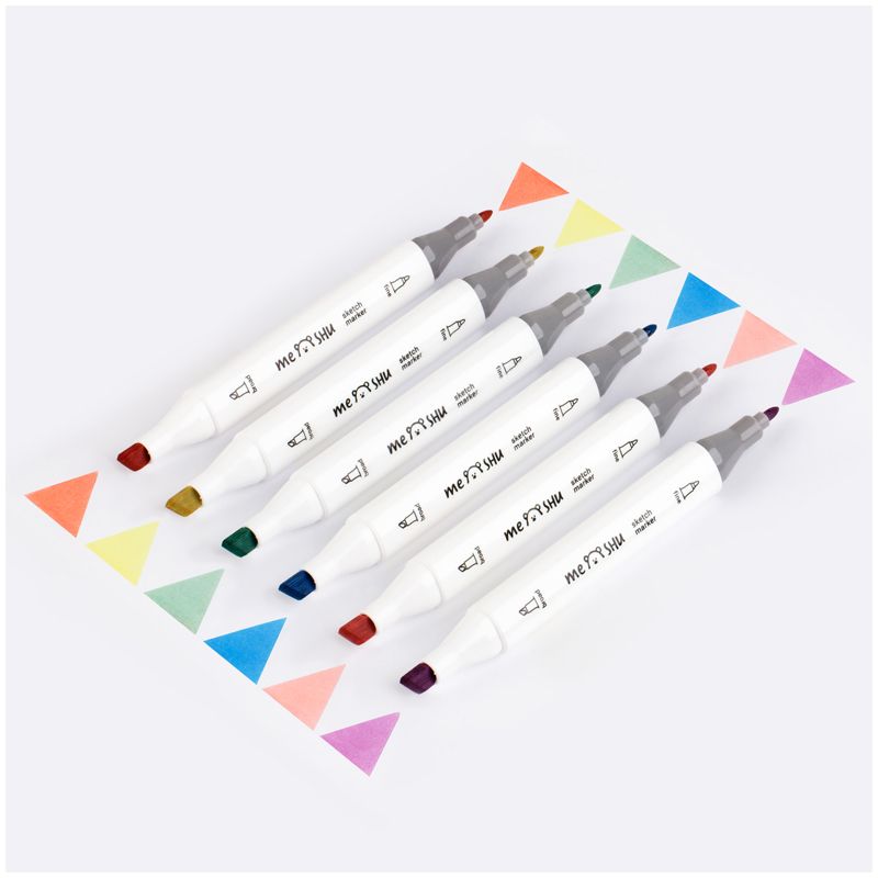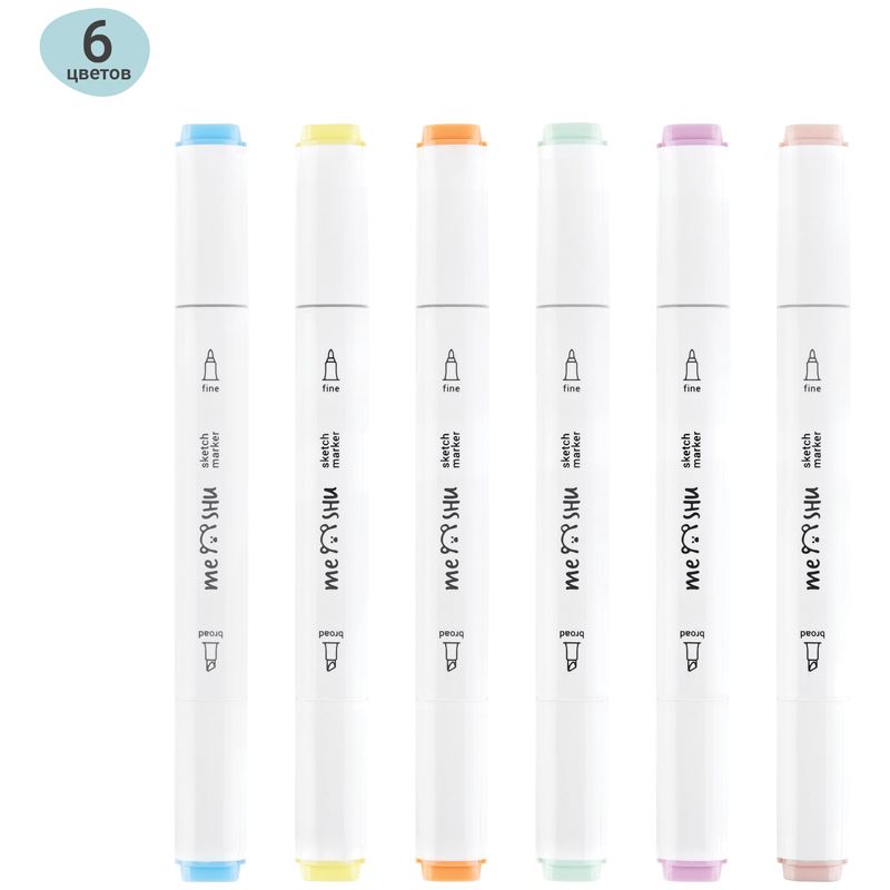 Набор двусторонних маркеров для скетчинга MESHU 06цв., пастельные цвета, корпус трехгранный, пулевид./клиновид.наконечники, ПВХ-бокс