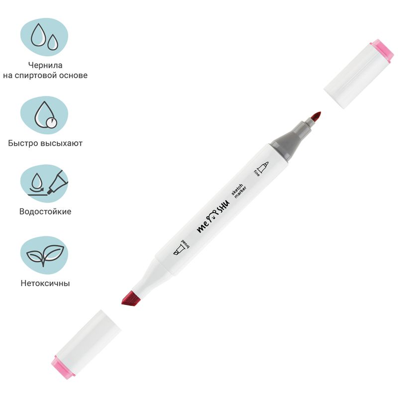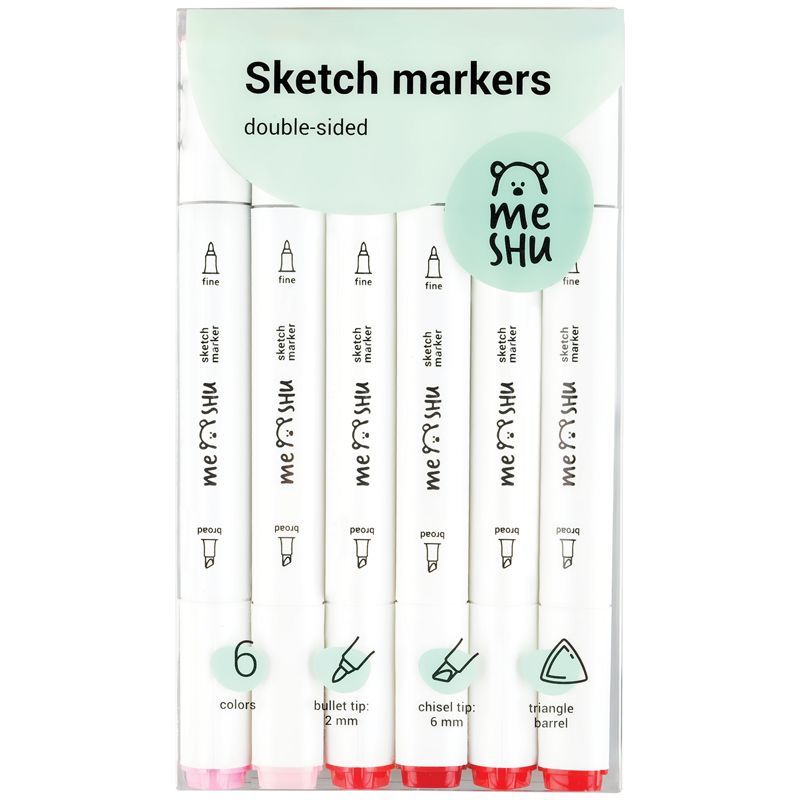 Набор двусторонних маркеров для скетчинга MESHU 06цв., розовые цвета, корпус трехгранный, пулевид./клиновид.наконечники, ПВХ-бокс