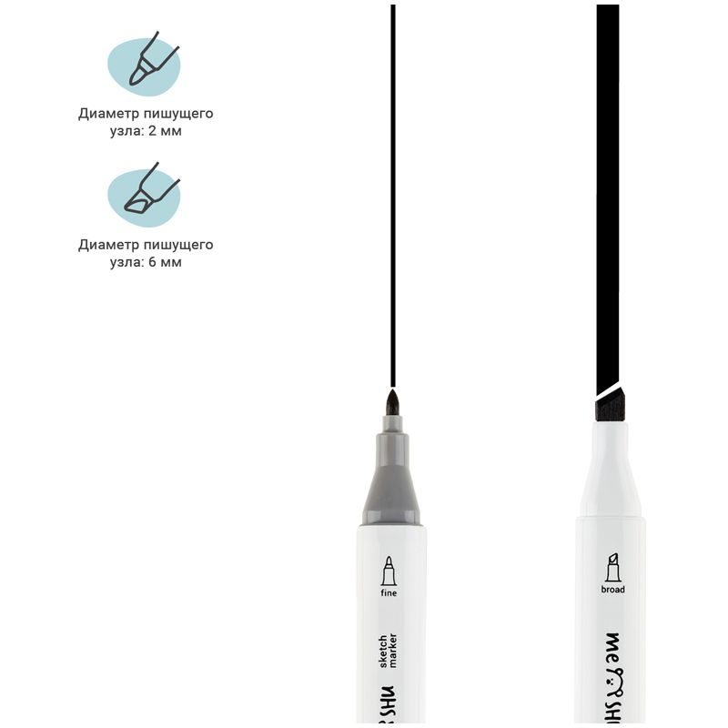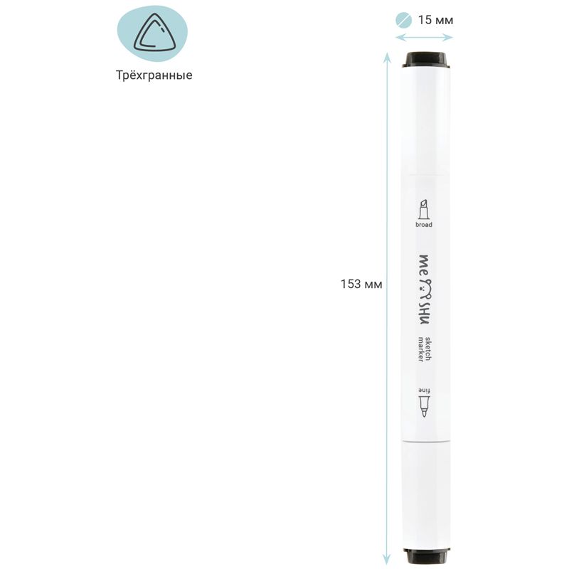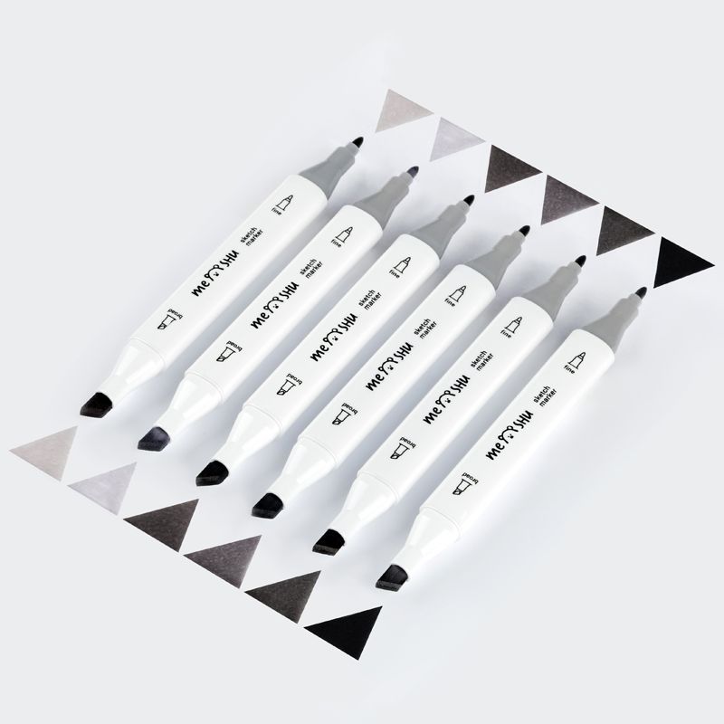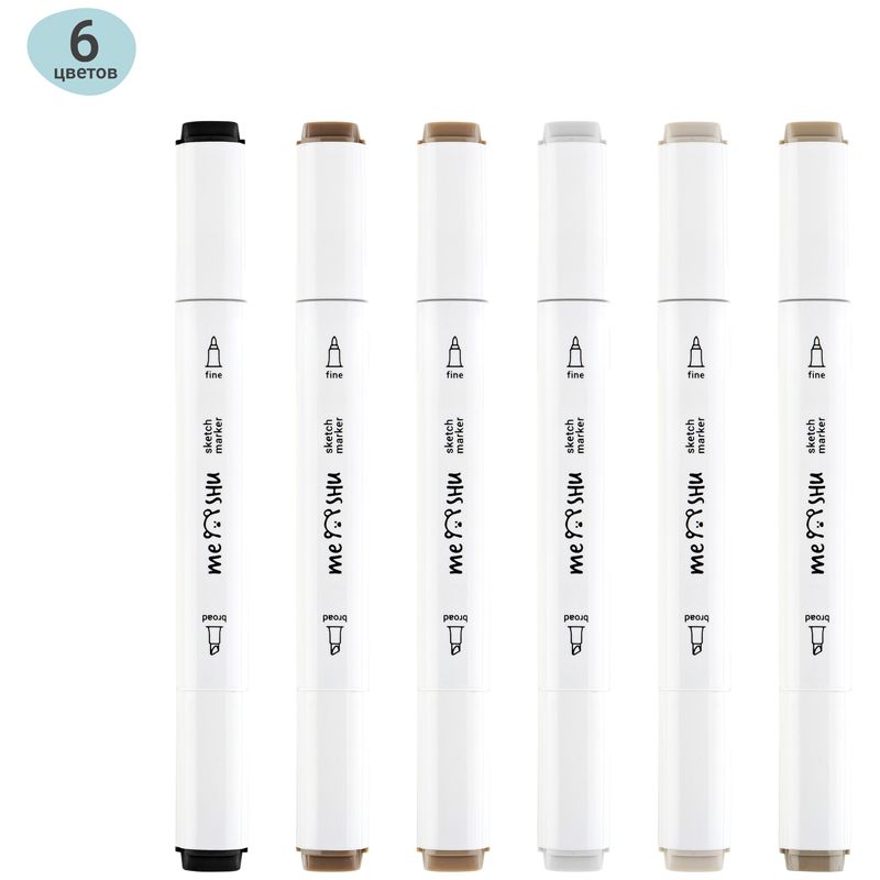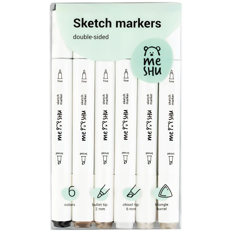 Набор двусторонних маркеров для скетчинга MESHU 06цв., теплые серые цвета, корпус трехгранный, пулевид./клиновид.наконечники, ПВХ-бокс
