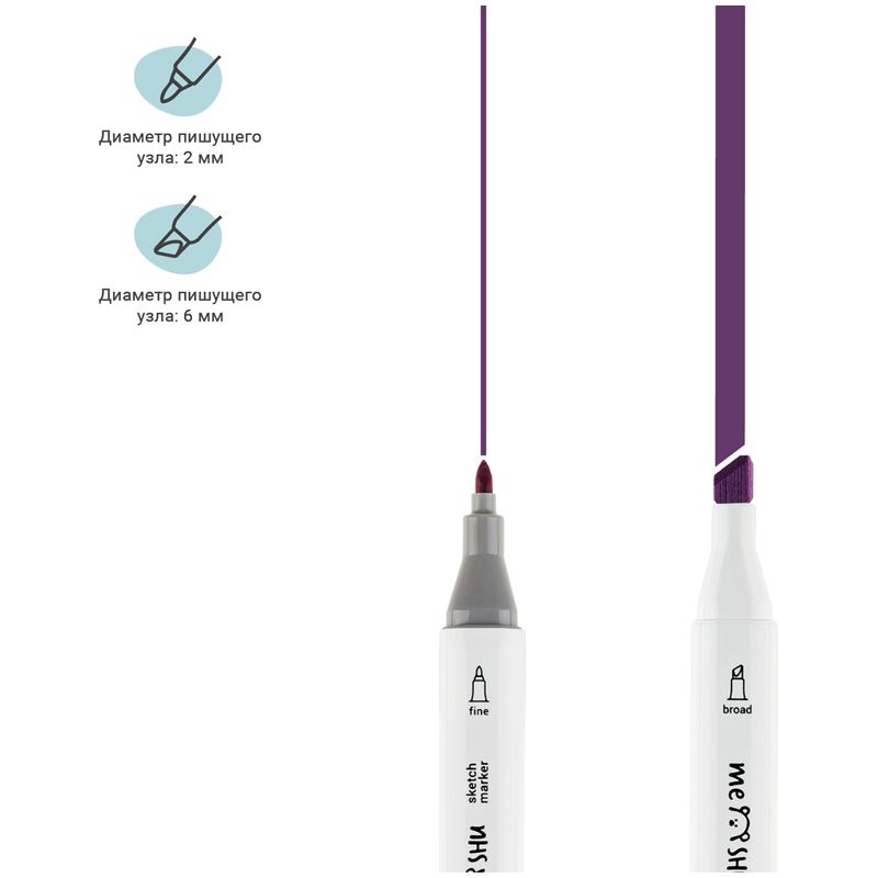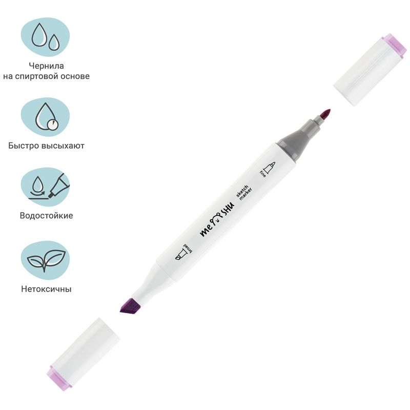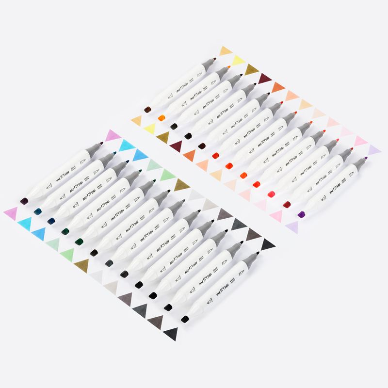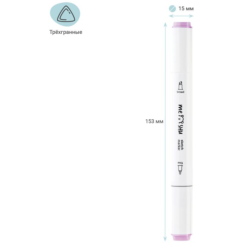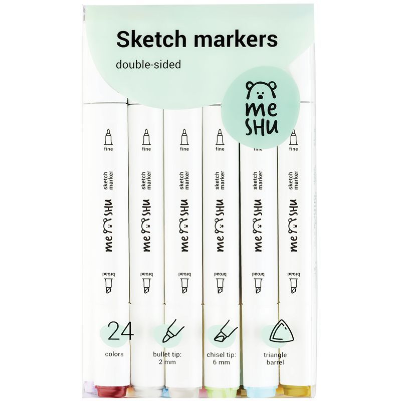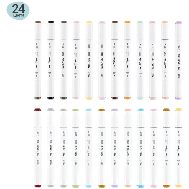 Набор двусторонних маркеров для скетчинга MESHU 24цв., пастельные цвета, корпус трехгранный, пулевид./клиновид.наконечники, ПВХ-бокс