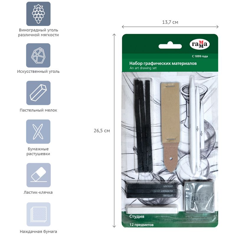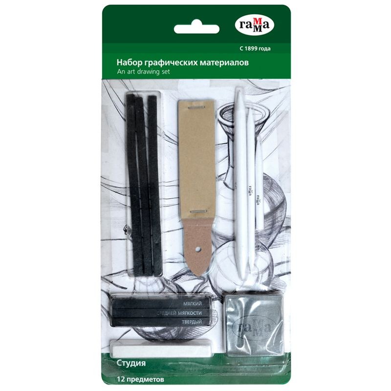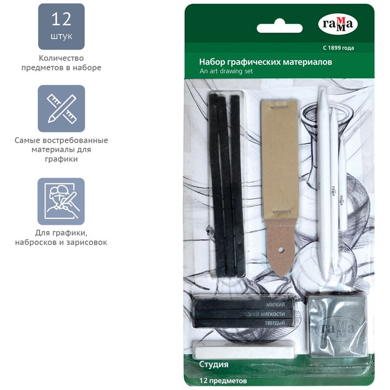 Набор графических материалов Гамма "Студия", 12 предметов, блистер, европодвес