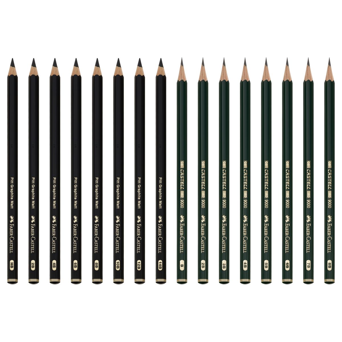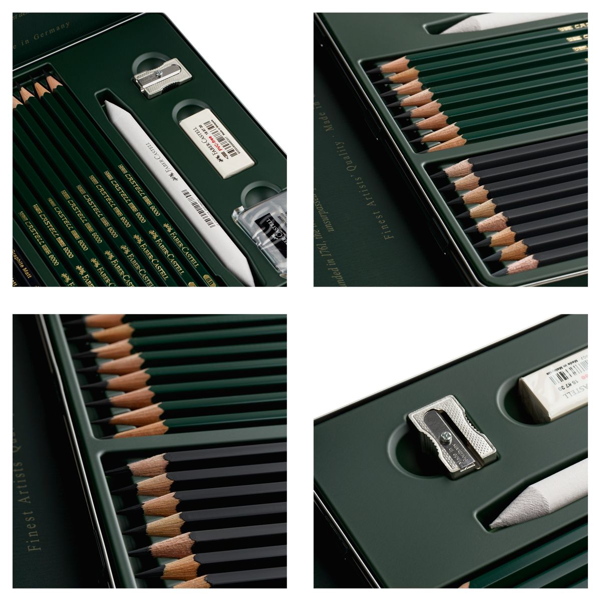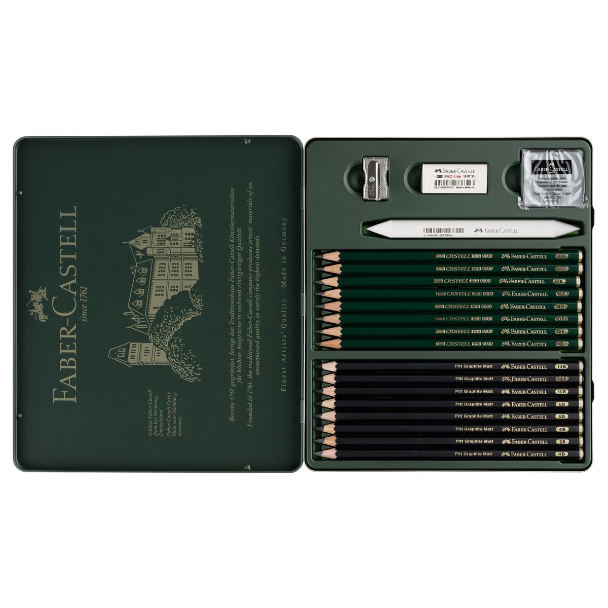 Набор карандашей ч/г Faber-Castell "Pitt Graphite Matt" и "Castell 9000", 20 предметов, заточен., метал. кор.