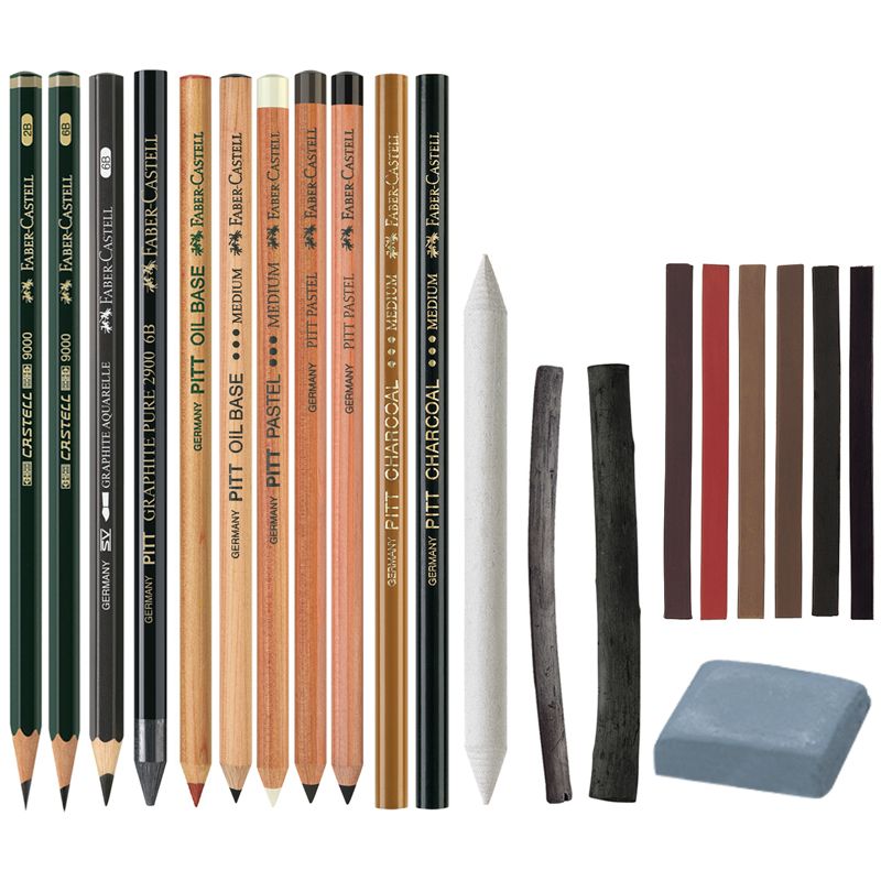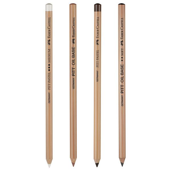 • 3 масляных карандаша Pitt Oil Base (мягкий черный, средний черный, сангина 188) имеют круглый корпус из бразильской сосны, высокую светостойкость, водостойкие, идеально подходят для прорисовки контуров и мелких деталей