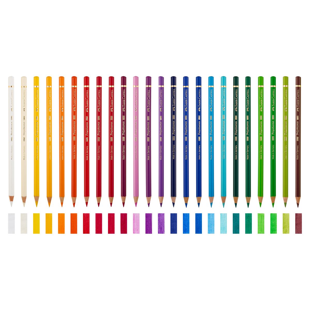 Карандаши Polychromos имеют круглый корпус, выполненный из бразильской сосны. При производстве грифелей для карандашей используется высококачественный концентрированный пигмент, а благодаря специальной технологии проклеивания грифеля (SV), грифель не ломается при падении и затачивании. Все оттенки прекрасно сочетаются с палитрой других продуктов компании Faber-Castell.