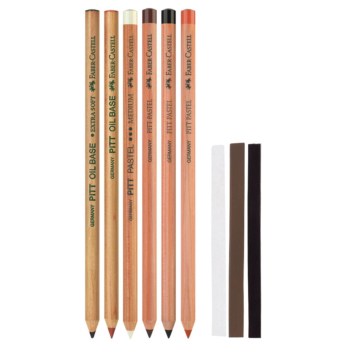 Набор художественных изделий Pitt Monochrome от Faber-Castell — идеальный стартовый комплект для профессиональных и начинающих живописцев. Внутри — 9 предметов. В набор входят: 2 масляных карандаша Pitt Oil Base artists (черный мягкий, сангина), 4 пастельных карандаша Pitt Pastel (белый средний, орехово-коричневый, сангина, черный), 3 пастельных мелка Pitt (белый, сангина, черный). Качественные масляные карандаши дают возможность творить в разнообразных стилях. Карандаши пастельных цветов помогут в создании неповторимых скетчей и эскизов. Дополняет комплектацию сухая пастель. Базовые принадлежности позволяют легко создавать монохромные рисунки и лайн-арты. Содержимое упаковано в блистер.