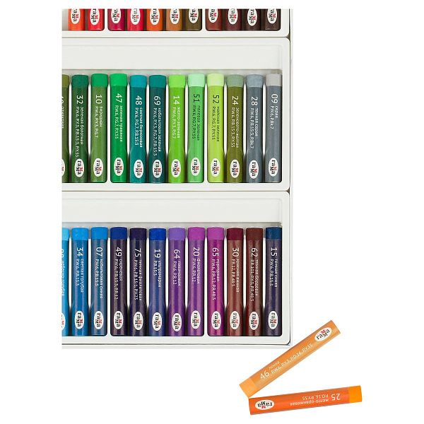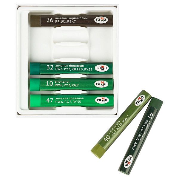- Масляная пастель — отличается плотной, жирной текстурой, устойчива к осыпанию и сохраняет форму при длительном использовании.