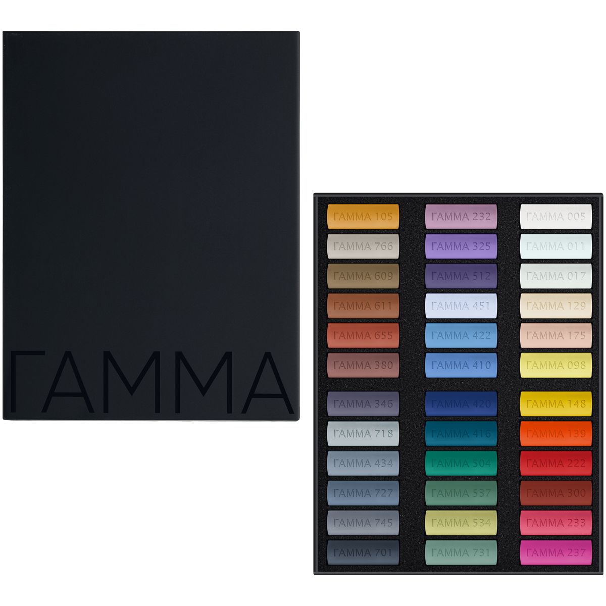 Для производства пастели используются тонкотёртые пигменты и каолиновая глина высочайшего качества. Каждый мелок круглой формы оптимально мягкий и в меру хрупкий. Диаметр мелка составляет 1,5 см, а длина – 4,8 см. Художественная пастель ГАММА обладает глубиной и интенсивностью цвета. Цвета в палитре легко смешиваются между собой и создают мягкие переходы одного оттенка к другому. Цвета ровно ложатся на бумагу разных фактур. Набор упакован в картонную коробку.