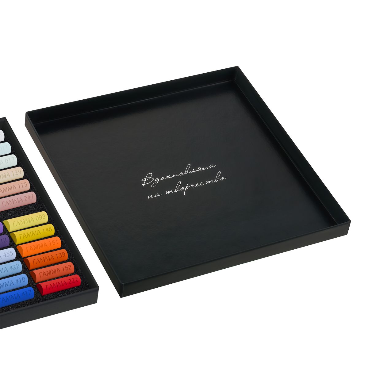 Для производства пастели используются тонкотертые пигменты и каолиновая глина высочайшего качества. Каждый мелок круглой формы оптимально мягкий и в меру хрупкий. Диаметр мелка составляет 1,5 см, а длина – 4,8 см. Художественная пастель ГАММА обладает глубиной и интенсивностью цвета. Цвета в палитре легко смешиваются между собой и создают мягкие переходы одного оттенка к другому. Цвета ровно ложатся на бумагу разных фактур. Набор упакован в картонную коробку.